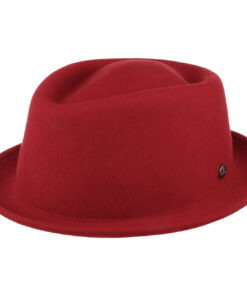 Timeless and with no-frills, this compact pork pie with diamond-shaped crown knows how to impress. The narrow-brimmed hat is made of crushable and water-repellent wool felt and will win you by its appearance and also its complete functionality. Entirely without grosgrain ribbon trim and brand pin, the small wool hat certainly has the makings of a classic.