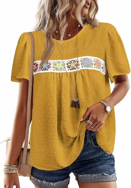 - Ethereal Bohemian Embroidery: Crochet floral cut-outs dance across the bodice; artfully blended with swiss dot texture for dimensional boho charm; The lace-like patterns filter sunlight into delicate shadows on skin