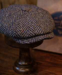 The “Eight Piece Navy Herringbone Newsboy Cap”, a timeless accessory that exudes classic charm and sophistication. Crafted from high-quality tweed wool fabric, this cap combines durability with style, making it a versatile addition to your wardrobe.
