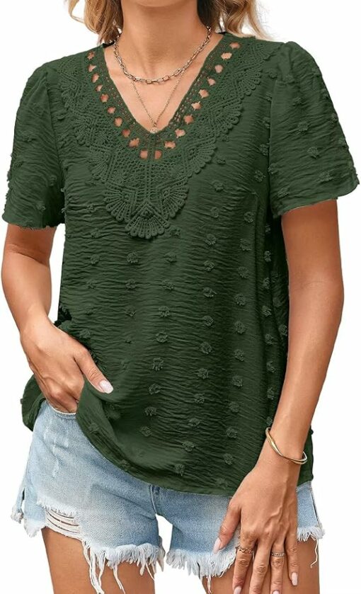 - Features: Crafted from soft, lightweight swiss dot fabric, this short sleeve tunic offers a loose fit that ensures breathability and ease of movement. The swiss dots provide a trendy touch, making it a versatile piece for various occasions.