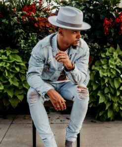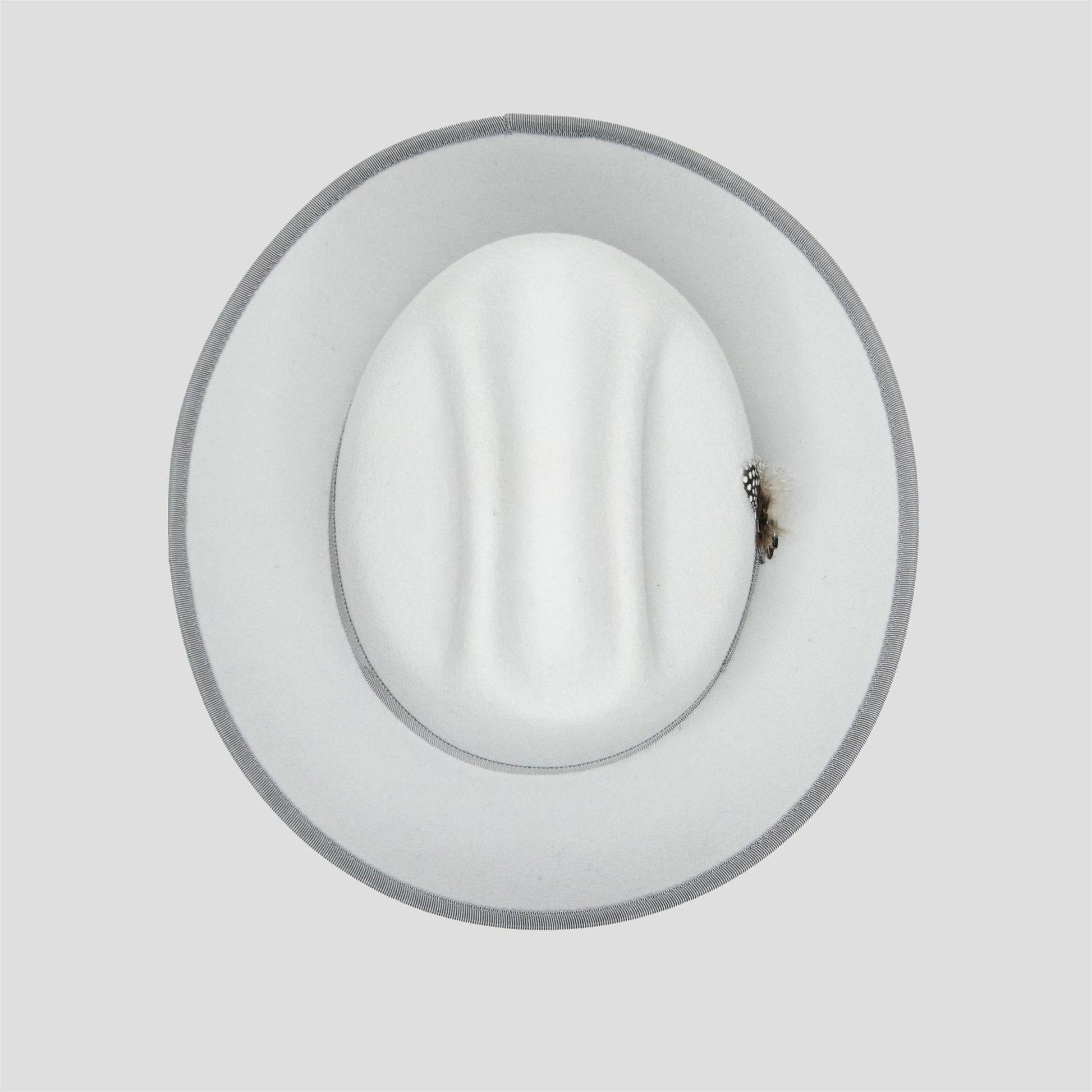 The Fedora is constructed of firm finish, fur felt and features a pinchfront crown, bound edge brim, interior cotton sweatband and grosgrain hat band with feather accent.