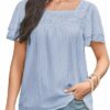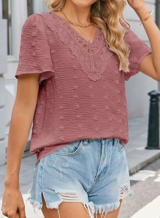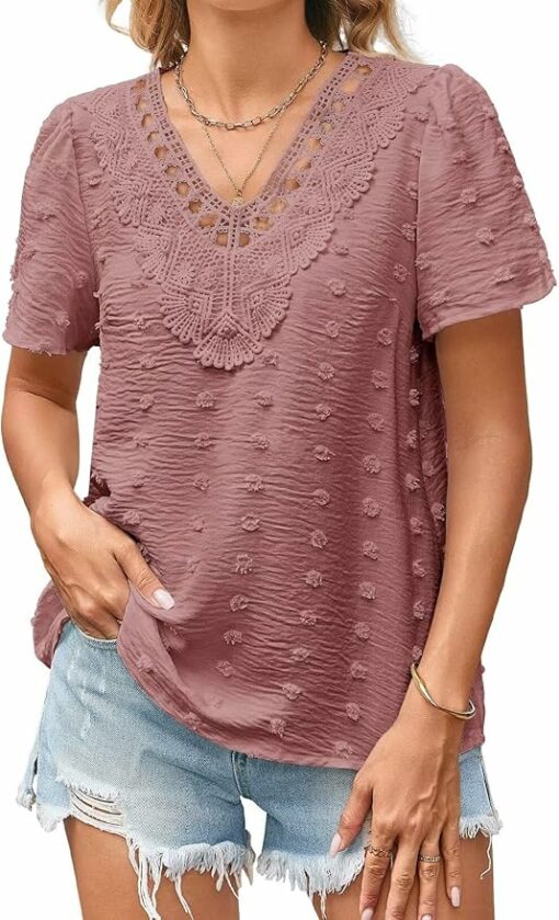 - Features: Crafted from soft, lightweight swiss dot fabric, this short sleeve tunic offers a loose fit that ensures breathability and ease of movement. The swiss dots provide a trendy touch, making it a versatile piece for various occasions.