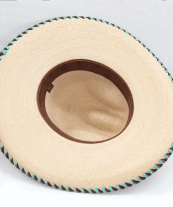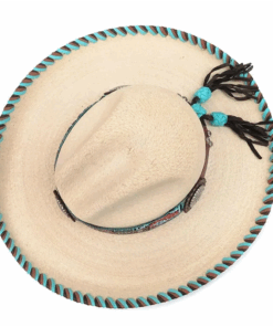 Red Star Riggings Beaded Band Concho Laced Palm Leaf Cowboy Straw Hat is crafted from palm leaves native to Mexico and known for their durability & strength., It has a 3 3/4″ brim and a 4 1/4″ Cattleman Crown. Lightweight and durable, it’s unlined for breathability.