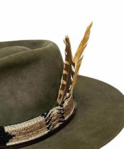 Rustic Rebel with Short Brim Green Color 2 Feathers Unique Band Loop