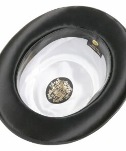 This top hat owes its grandeur to its characteristically high crown with grosgrain ribbon trim and its curved brim. This occasion wear hat is made from high-quality wool felt with a lustrous satin coating. Inside, it is enhanced by a leather lining band. This classic expresses its style-consciousness both in its choice of material and in its perfectly shaped, plain-coloured and shimmering design.