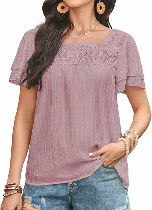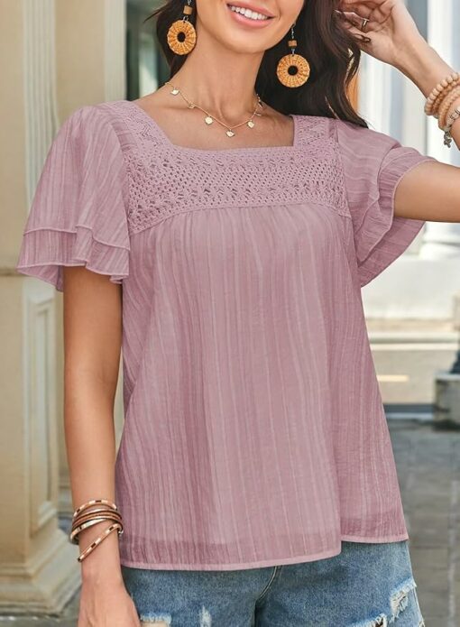 - Women’s square neck crochet lace boho shirts is made with high-quality fabric. Soft, lightweight and comfortable to wear.