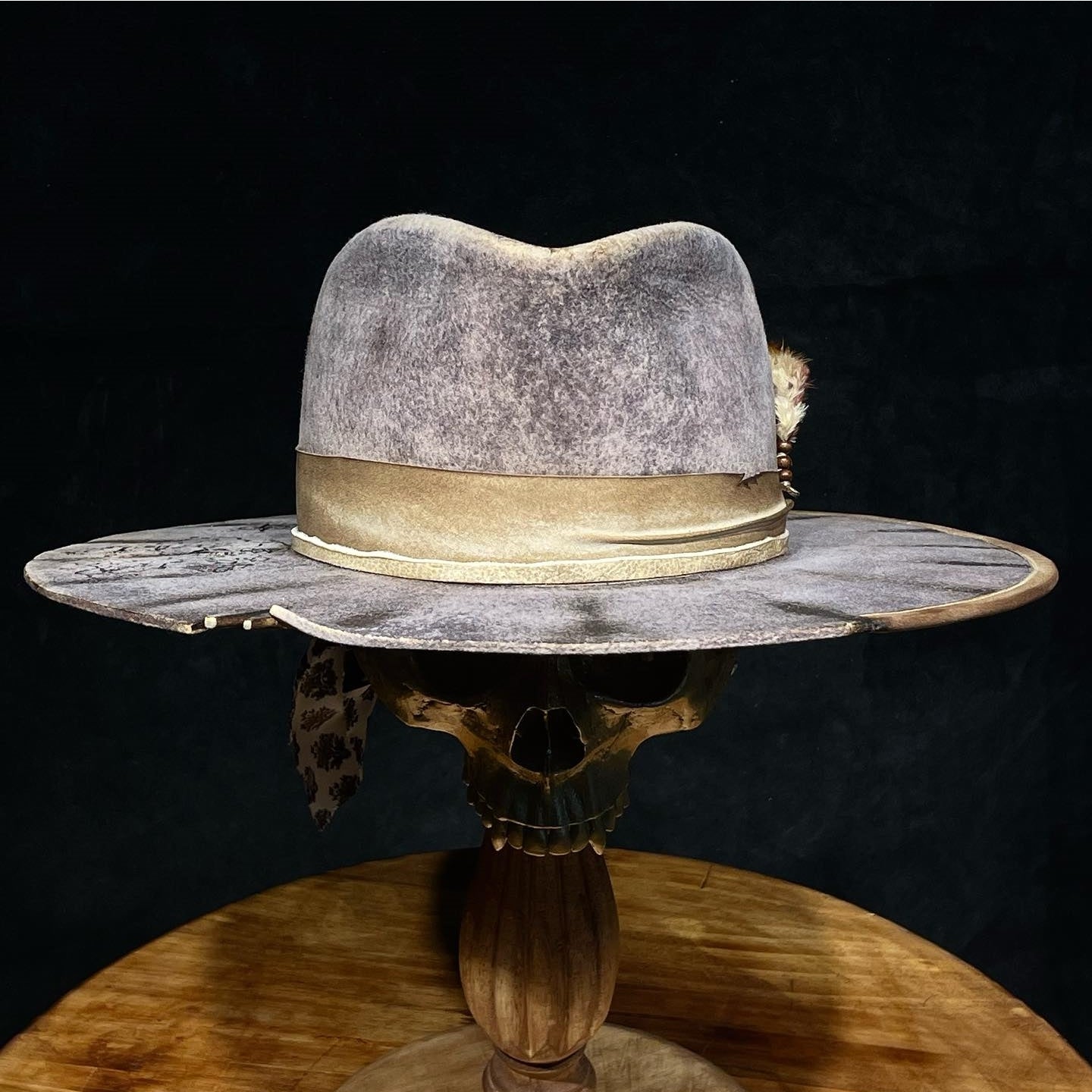 The “Funky Aged Top Hat” is beautifully crafted and exudes a unique charm.