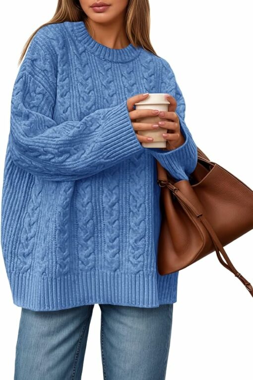 - Features: Cable knit, bell sleeve, crewneck, drop shoulder, ribbed cuffs, hem and neckline, loose fit, casual style. Crew neck design offers traditional styling and comfortable fit for all-day wear. Ribbed cuffs and hem provide a secure fit while maintaining shape throughout wear. The crew neck sweater for women will surely make you stand out