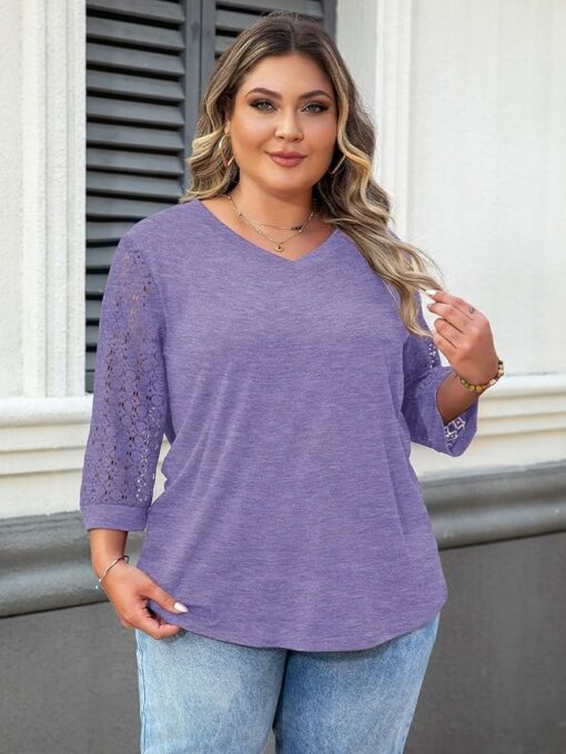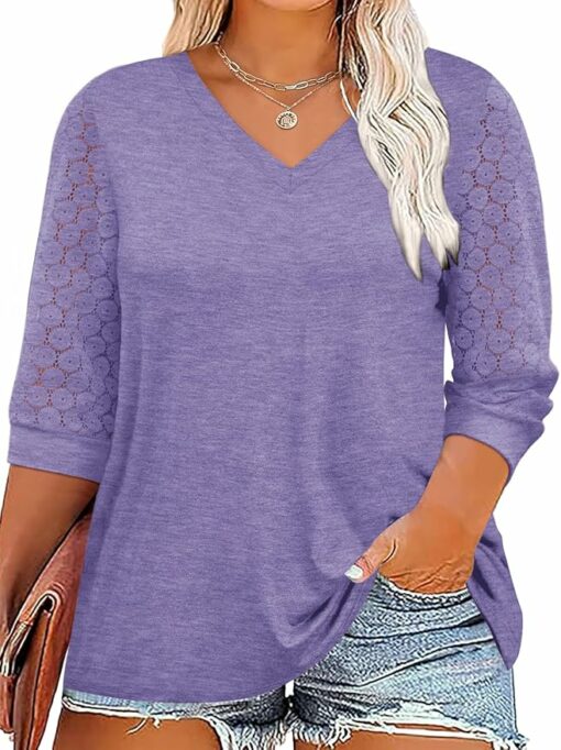 - Comfortable Fabric: Plus size 3/4 length sleeve shirt is made of soft, lightweight, elastic fabric, which is skin-friendly, breathable, not see through, wrinkle-resistant, very suitable for daily wear in spring, summer and fall