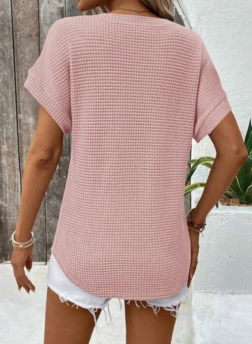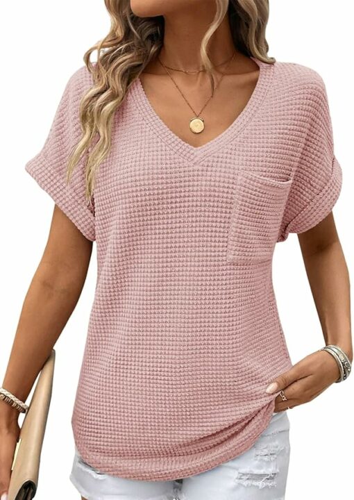 - Women’s Waffle Knit Tops is made with lightweight and soft material, which are smooth, elastic and stretchable, it’s very light and breathable, comfortable to wear.